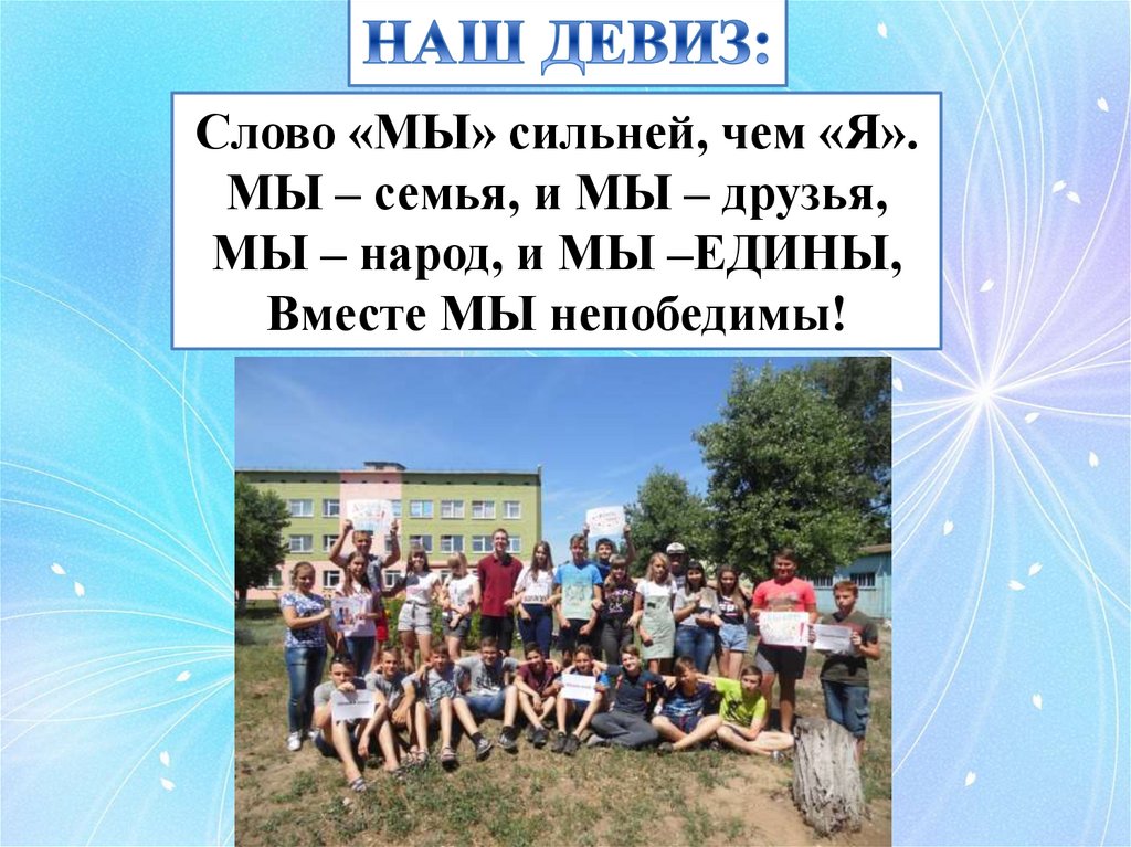Слово «МЫ» сильней, чем «Я».МЫ – семья, и МЫ – друзья,