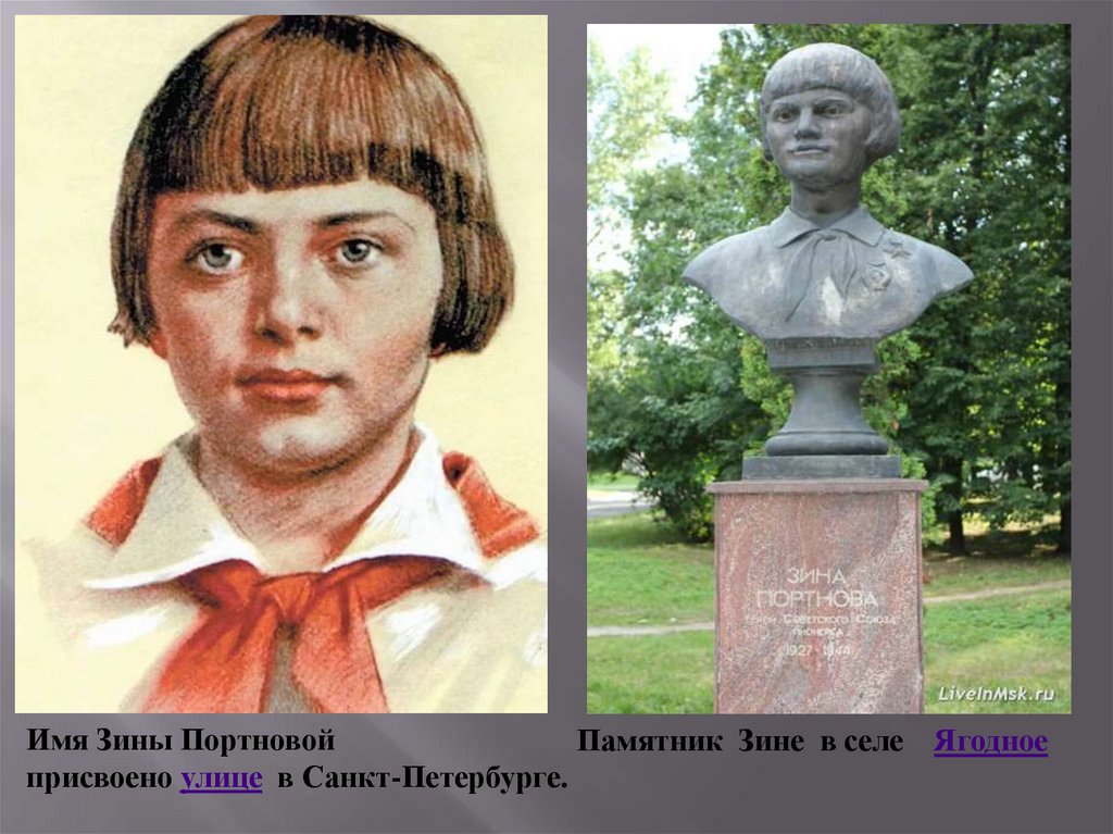 Имя Зины ПортновойПамятник Зине в селе Ягодное