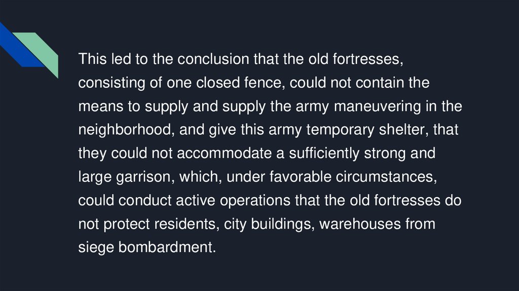 This led to the conclusion that the old fortresses,consisting of one closed fence, could not contain the