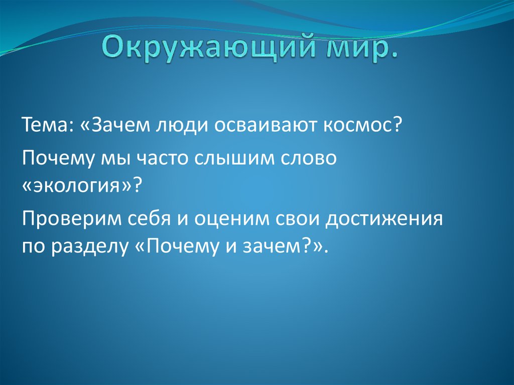 «Зачем люди осваивают космос? Почему мы часто слышим слово «экология»?