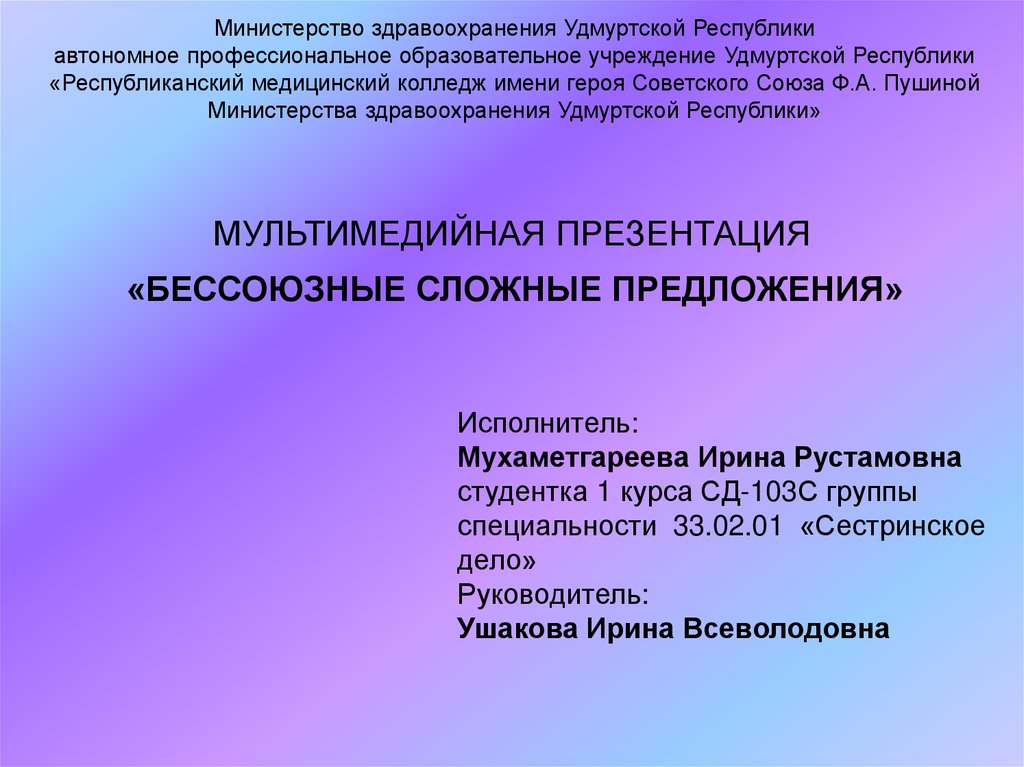 Министерство здравоохранения Удмуртской Республикиавтономное профессиональное образовательное учреждение Удмуртской Республики