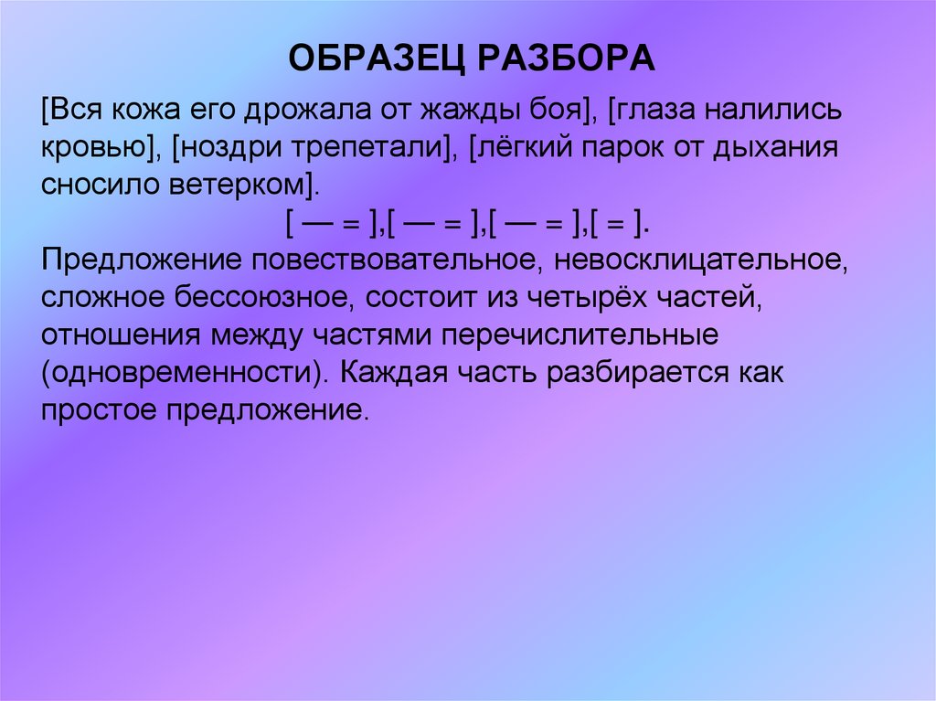 СИНТАКСИЧЕСКИЙ РАЗБОРБЕССОЮЗНОГО СЛОЖНОГО ПРЕДЛОЖЕНИЯ