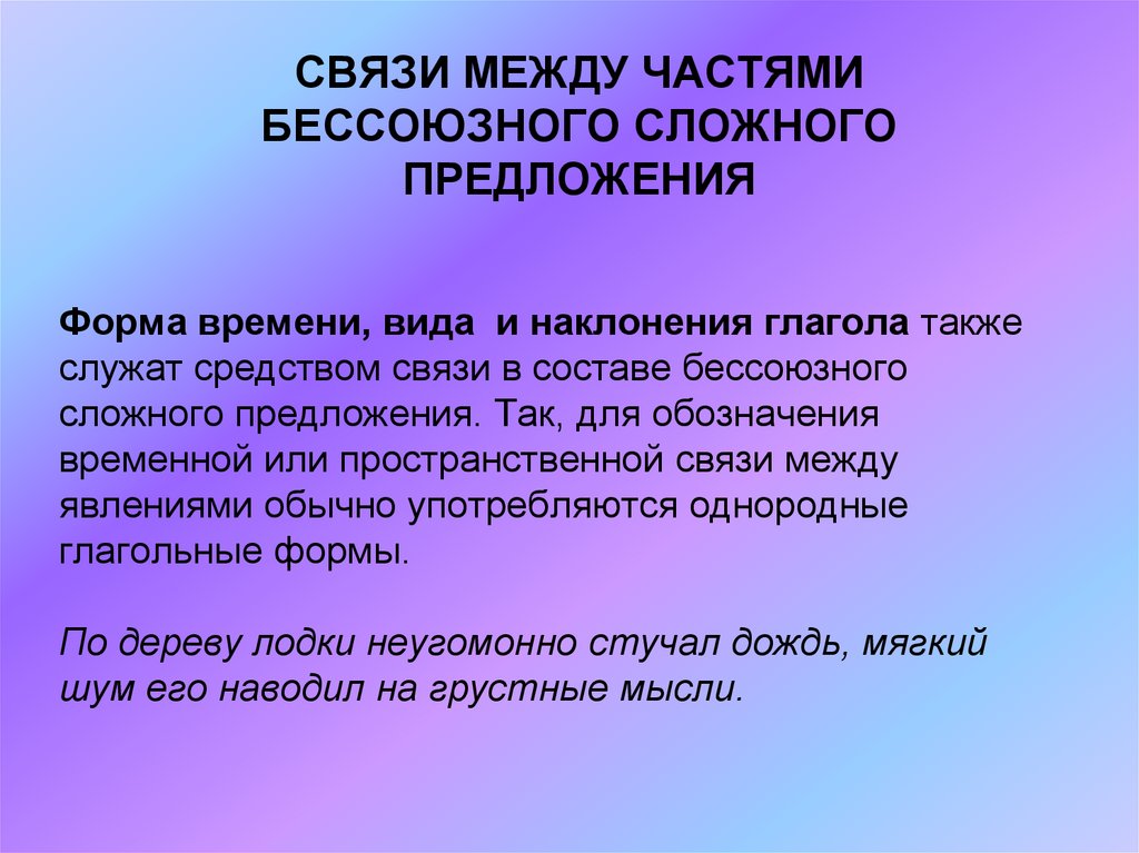 СВЯЗИ МЕЖДУ ЧАСТЯМИБЕССОЮЗНОГО СЛОЖНОГО
