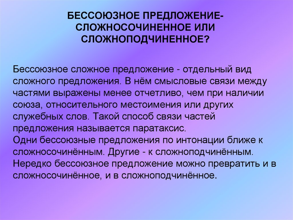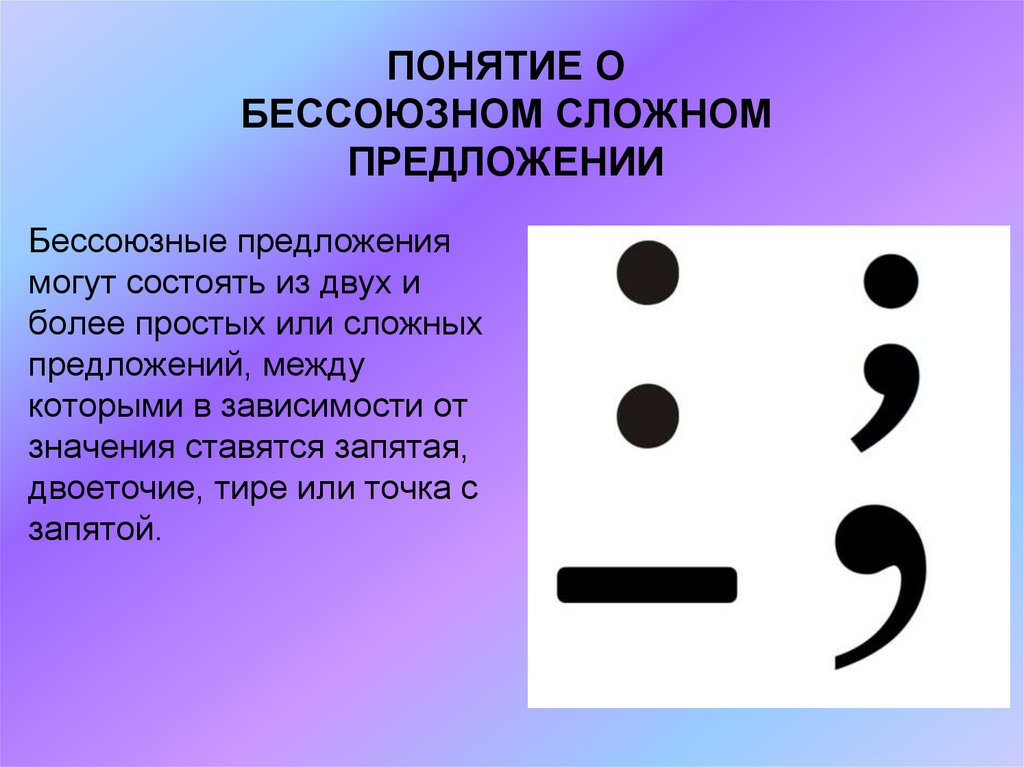«БЕССОЮЗНЫЕ СЛОЖНЫЕ ПРЕДЛОЖЕНИЯ»