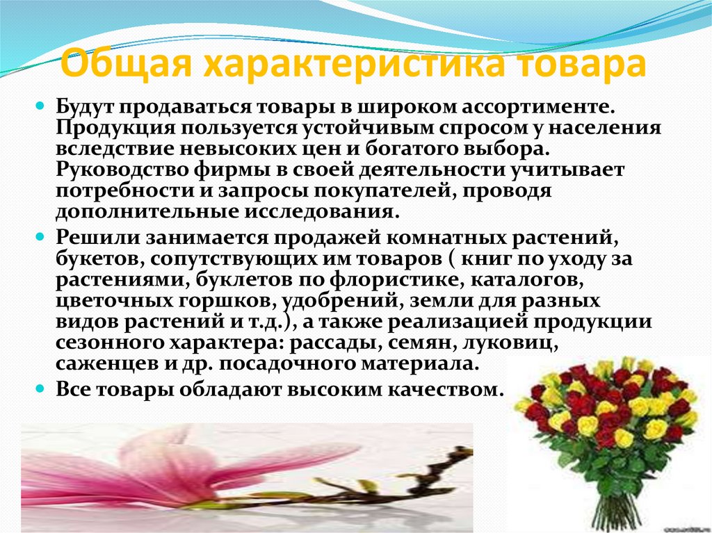 Общая характеристика товараБудут продаваться товары в широком ассортименте.