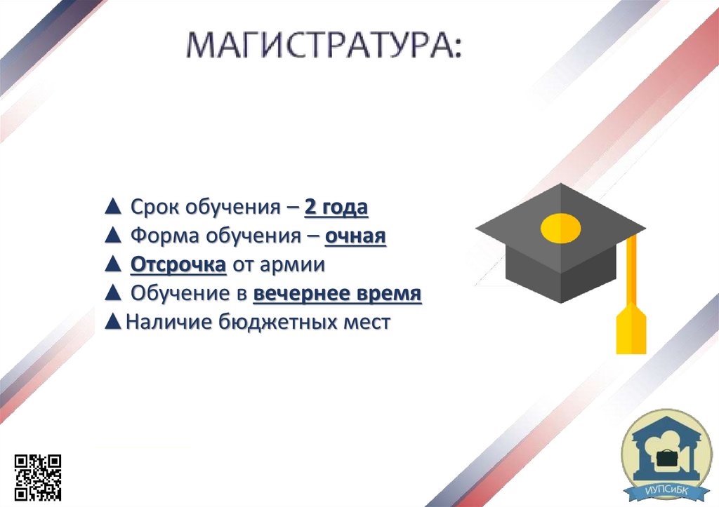 ▲ Срок обучения – 2 года▲ Форма обучения – очная
