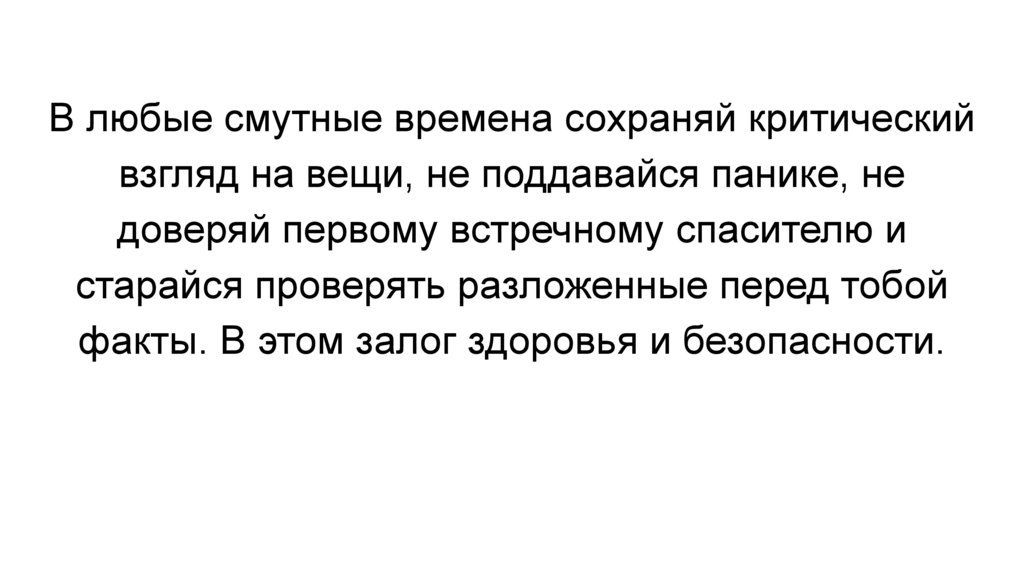В любые смутные времена сохраняй критическийвзгляд на вещи, не поддавайся панике, не