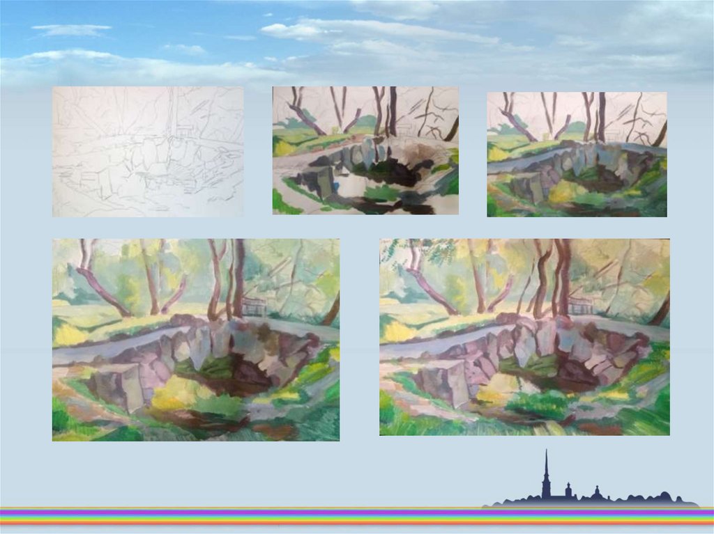 Весенний пейзаж. Поэтапное рисование
