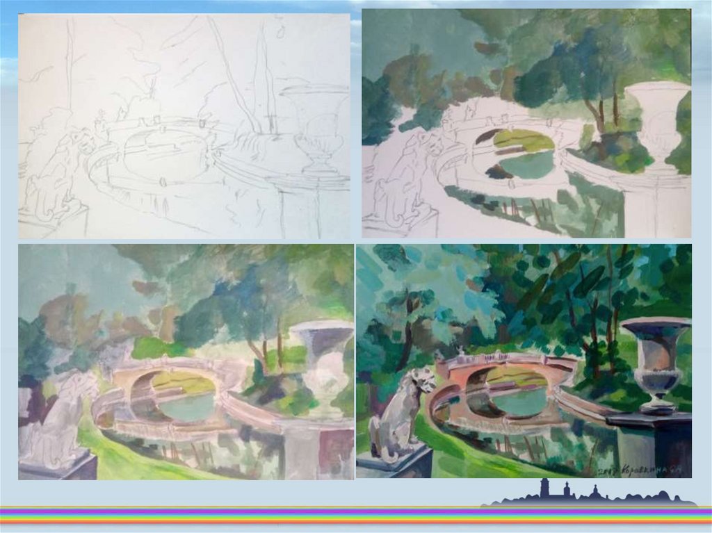 Поэтапное изображение паркового пейзажа