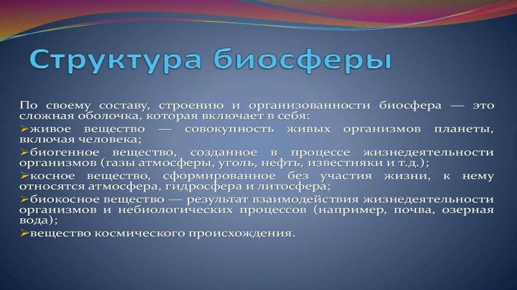 Биосфера. Классификация вещества биосферы по В. И. Вернадскому