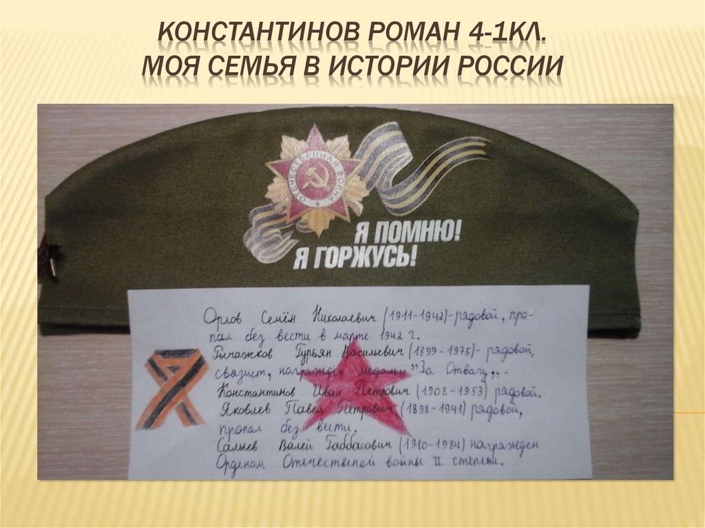 КОНСТАНТИНОВ РОМАН 4-1КЛ.МОЯ СЕМЬЯ В ИСТОРИИ РОССИИ