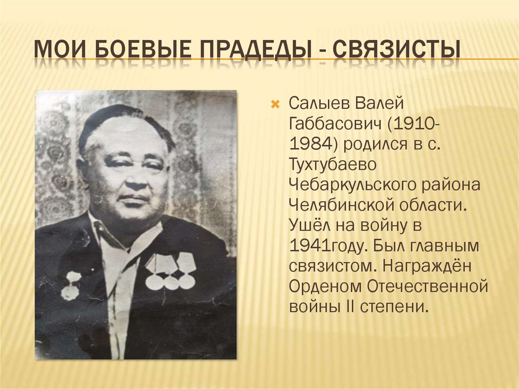 МОИ БОЕВЫЕ ПРАДЕДЫ - СВЯЗИСТЫСалыев Валей
