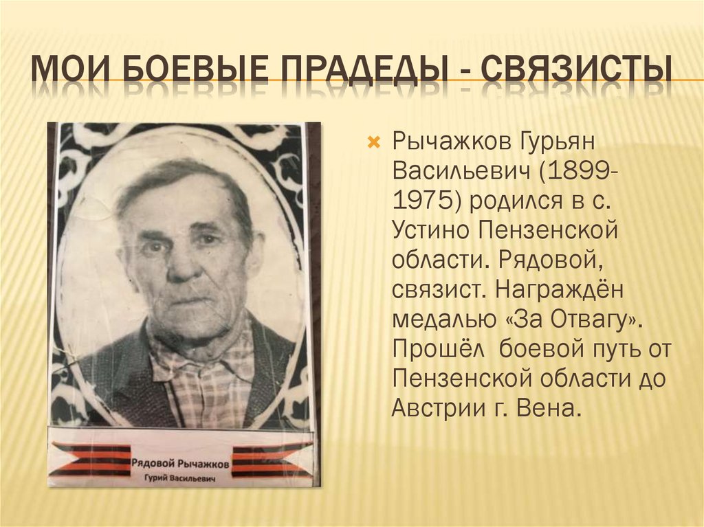 МОИ БОЕВЫЕ ПРАДЕДЫ - СВЯЗИСТЫРычажков Гурьян