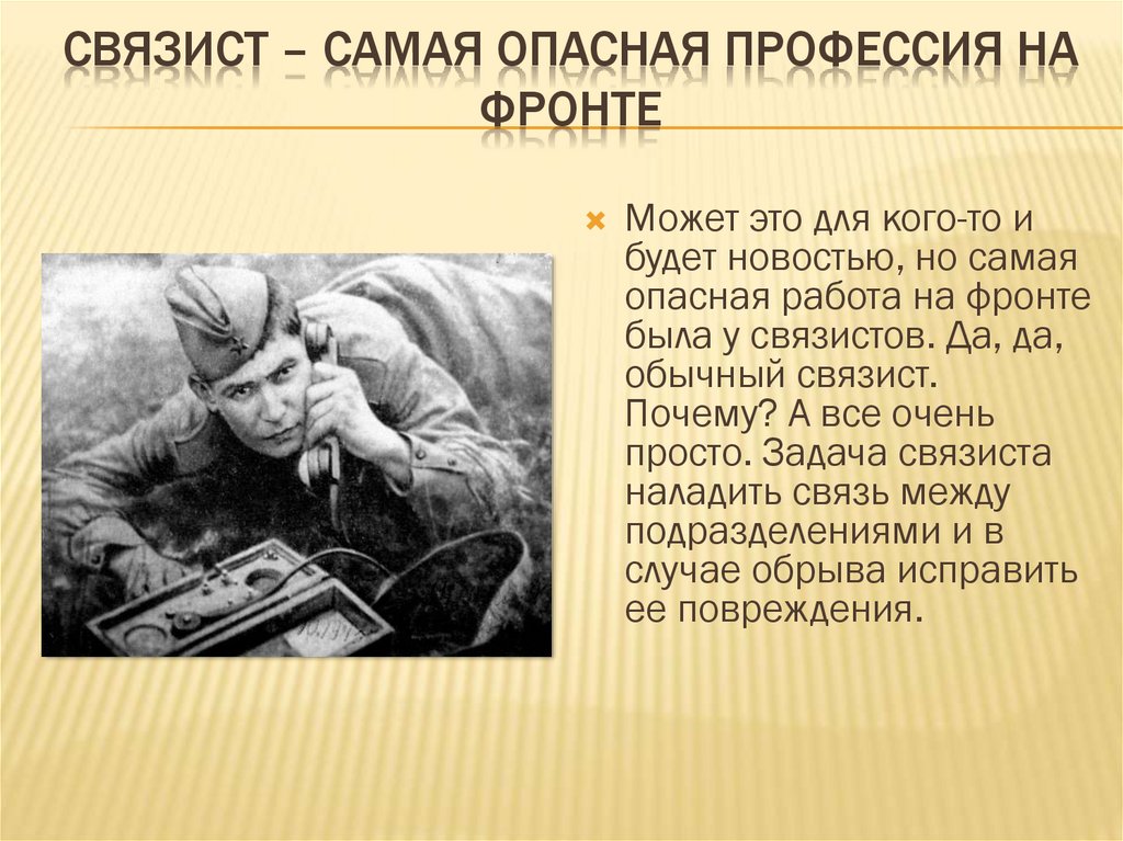 СВЯЗИСТ – САМАЯ ОПАСНАЯ ПРОФЕССИЯ НАФРОНТЕ