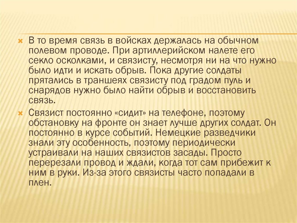 ним в руки. Из-за этого связисты часто попадали в