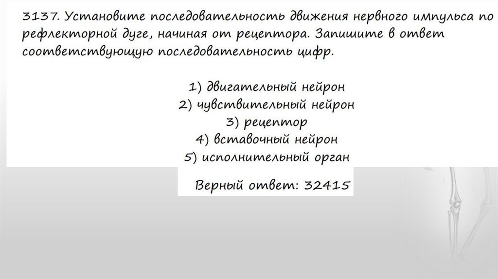 4) Двигательный нейрон передает нервный импульс из ЦНС на рабочий орган