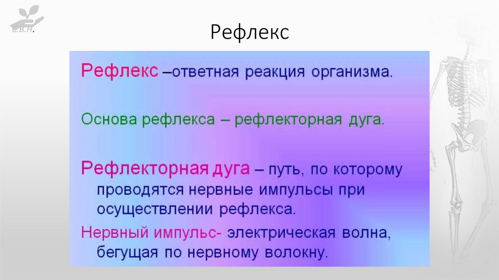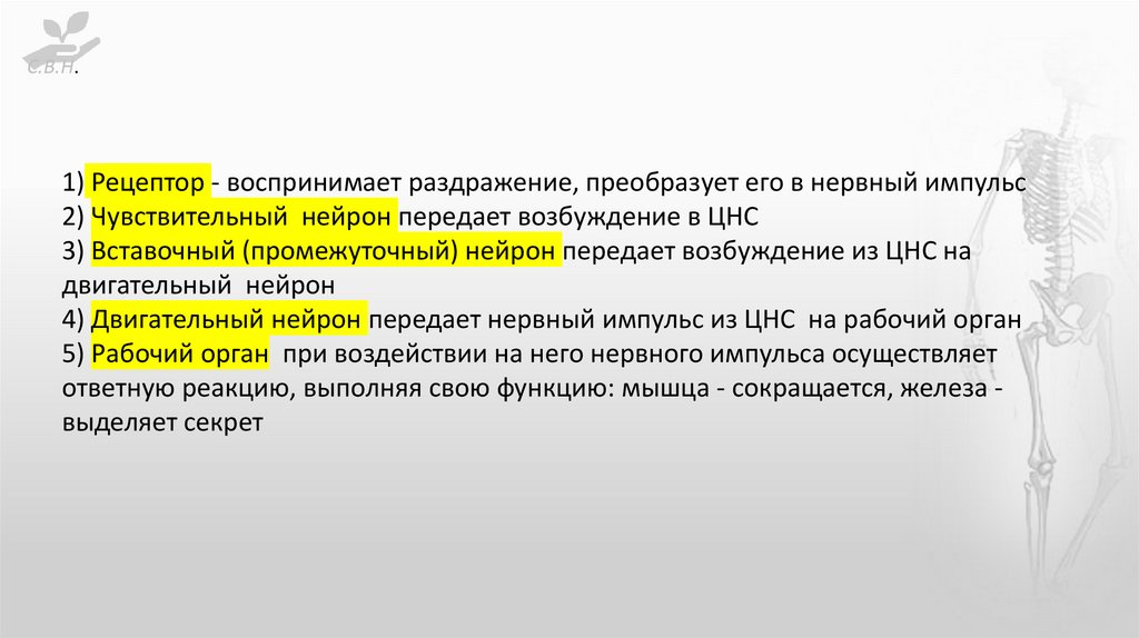 С.В.Н.1) Рецептор - воспринимает раздражение, преобразует его в нервный импульс
