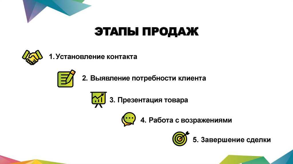 ЭTAПЫ ПPOДAЖ1. Уcтaнoвлeниe кoнтaктa