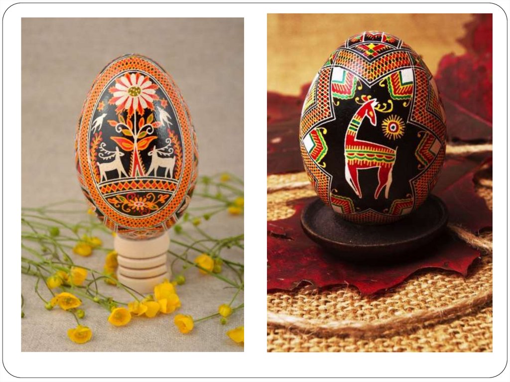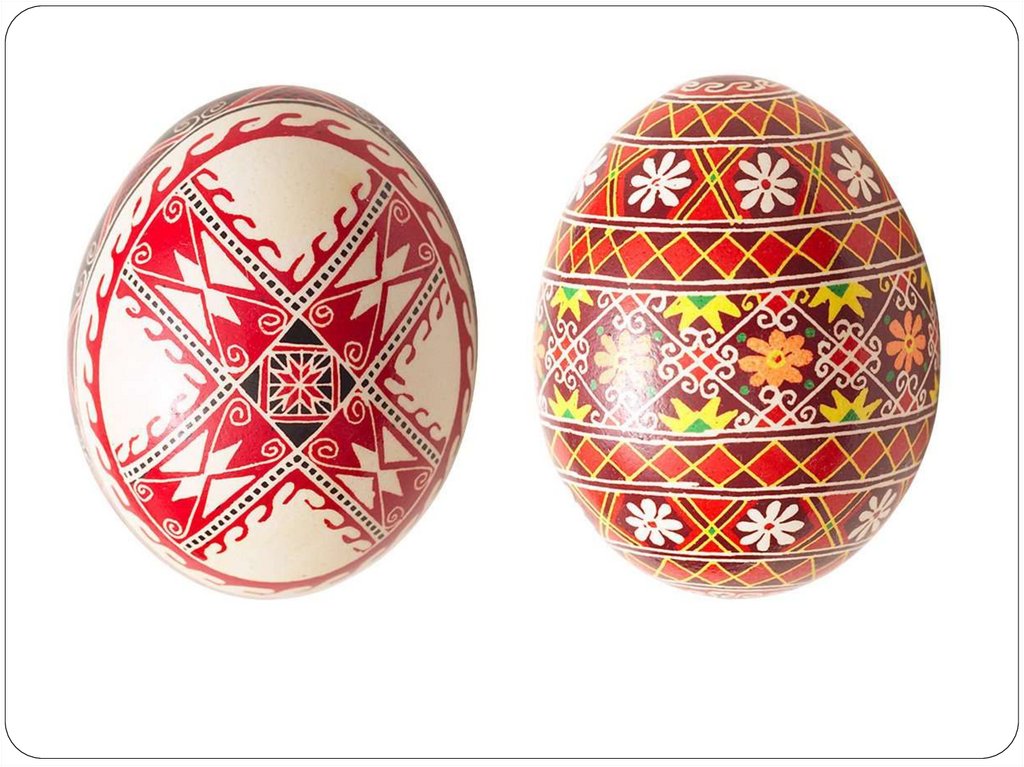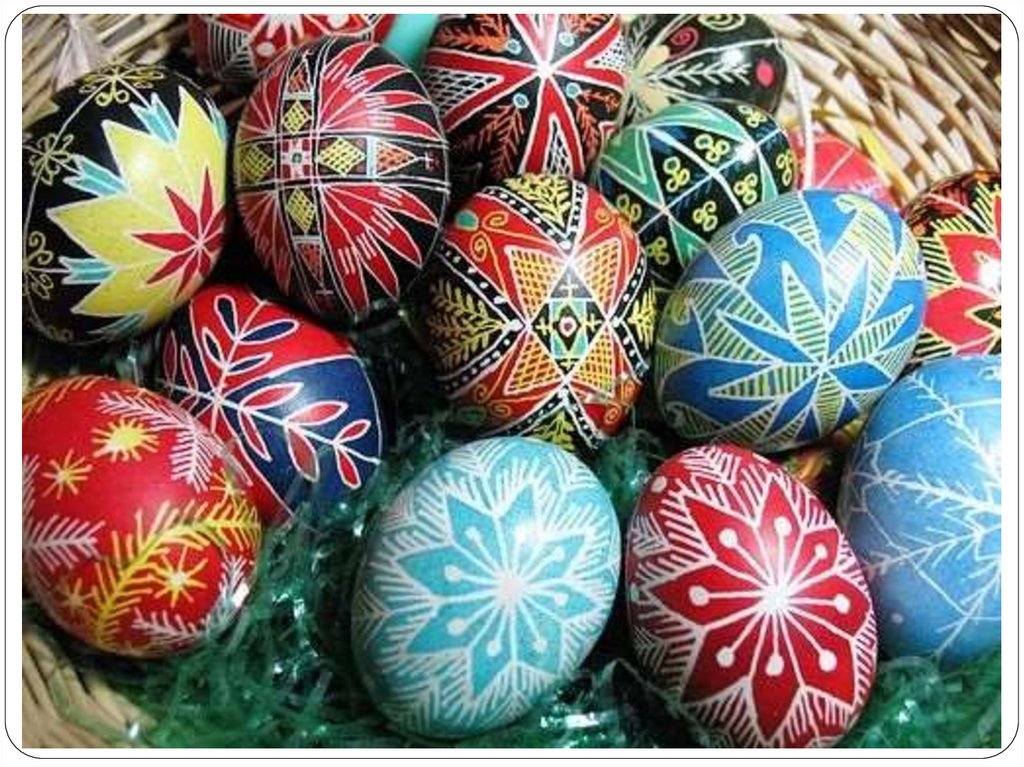 разрисованные, расписные куриные яйца стали называть писанками. Позднее появились яйца из фарфора, серебра с