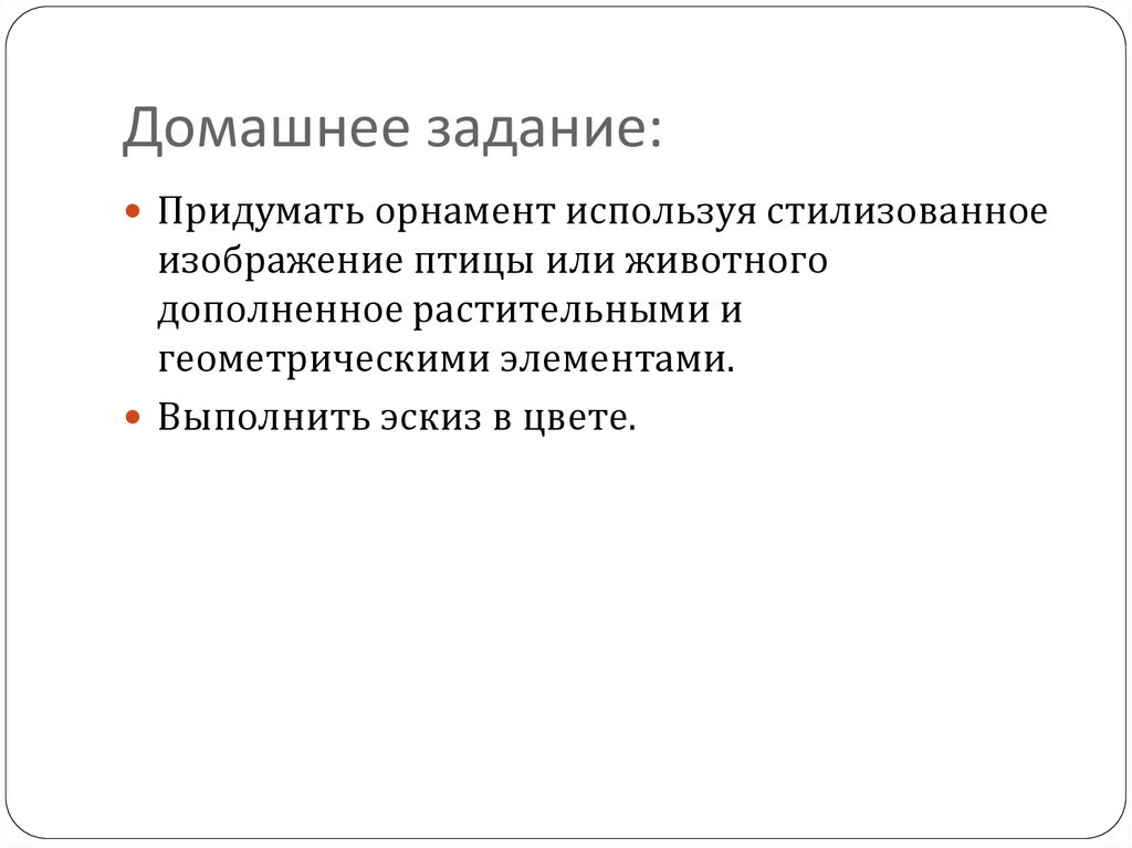 Домашнее задание:Придумать орнамент используя стилизованное