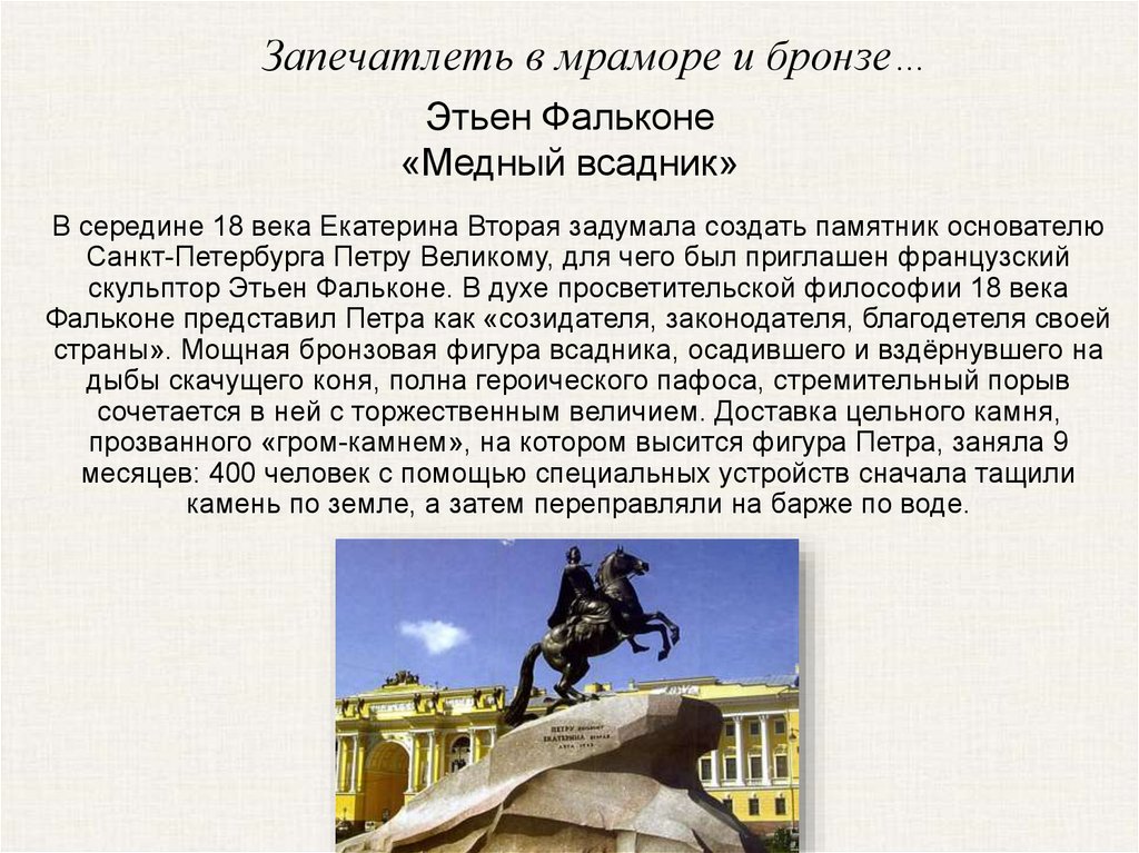 Санкт-Петербурга Петру Великому, для чего был приглашен французский