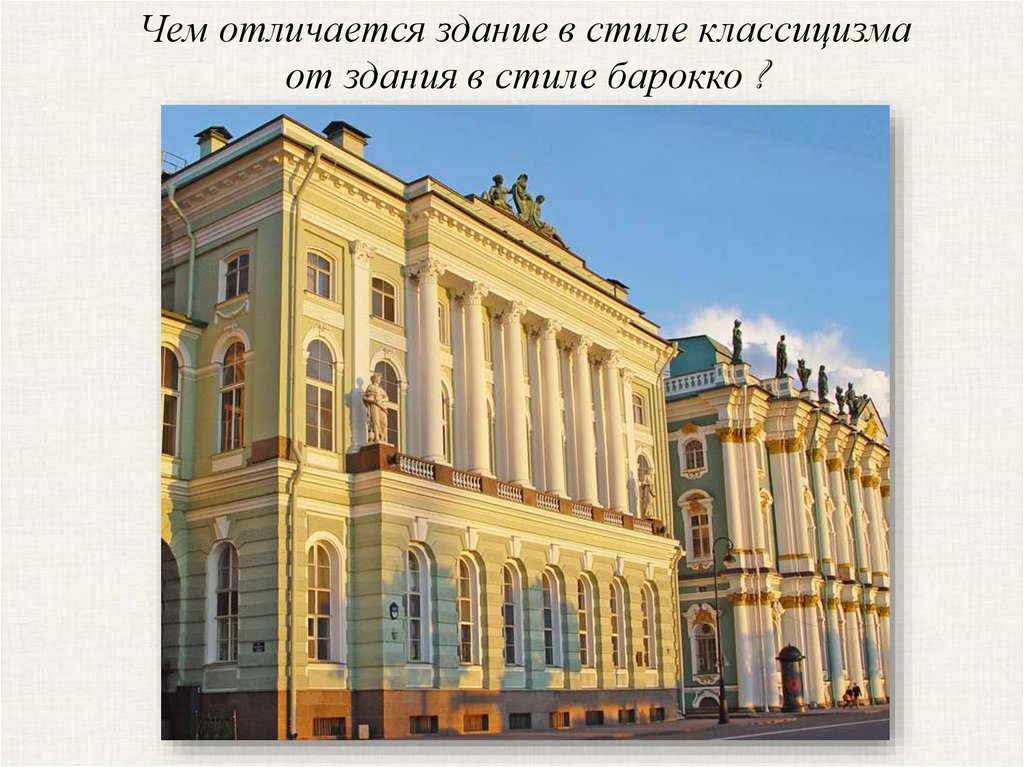 Чем отличается здание в стиле классицизмаот здания в стиле барокко ?