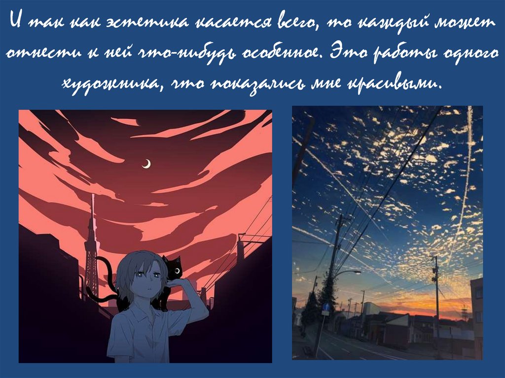Эстетика-это красота. А красота многогранна и не являетсячем-то единым. Для каждого это что-то особенное.