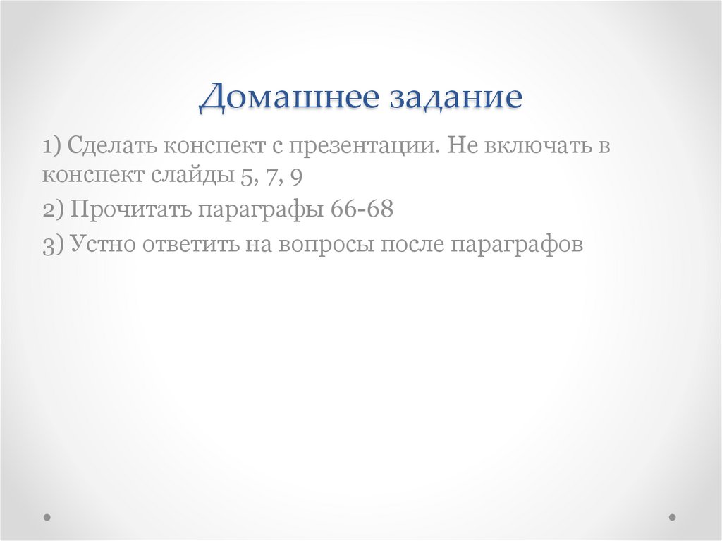 Домашнее задание1) Сделать конспект с презентации. Не включать в