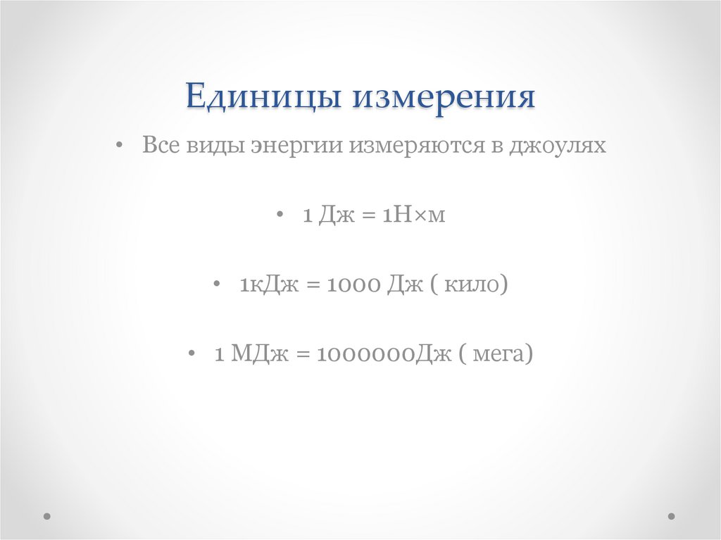 Единицы измерения• Все виды энергии измеряются в джоулях