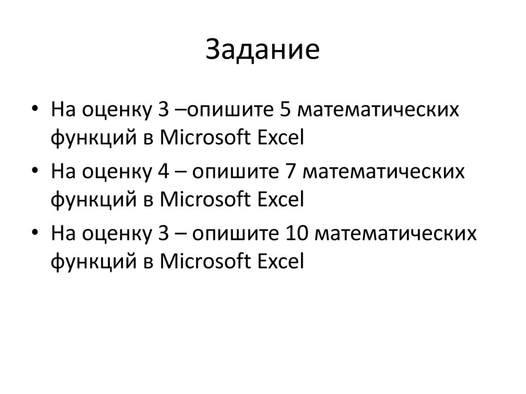 Задание• На оценку 3 –опишите 5 математических