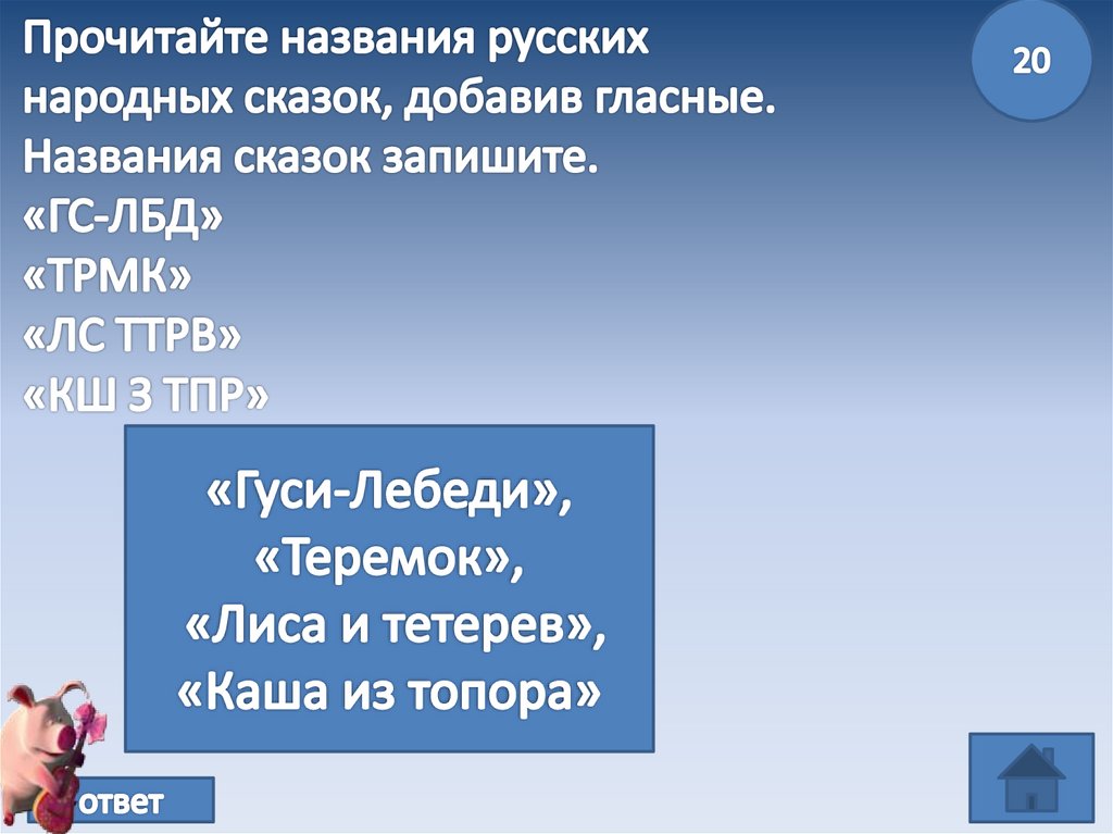 Интеллектуальная игра для учеников 1-В и 1-Г классов «Своя игра»