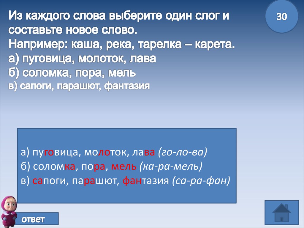 в) сапоги, парашют, фантазия (са-ра-фан)