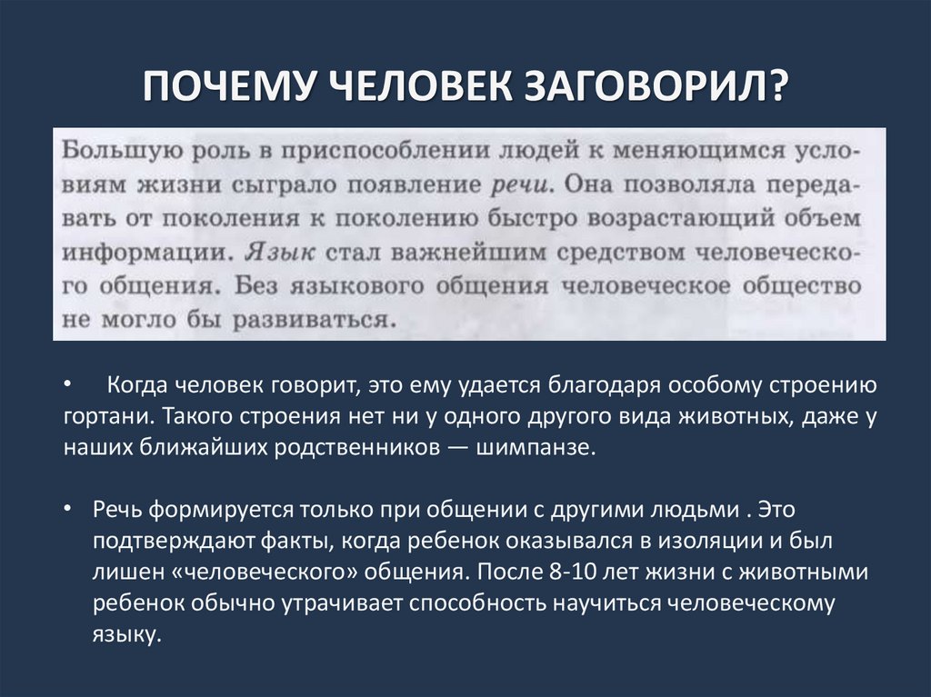 ПОЧЕМУ ЧЕЛОВЕК ЗАГОВОРИЛ?• Когда человек говорит, это ему удается благодаря особому строению