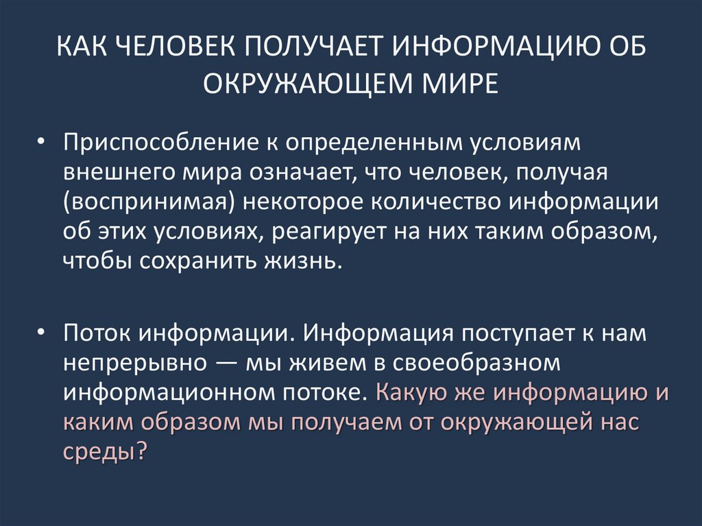 КАК ЧЕЛОВЕК ПОЛУЧАЕТ ИНФОРМАЦИЮ ОБОКРУЖАЮЩЕМ МИРЕ