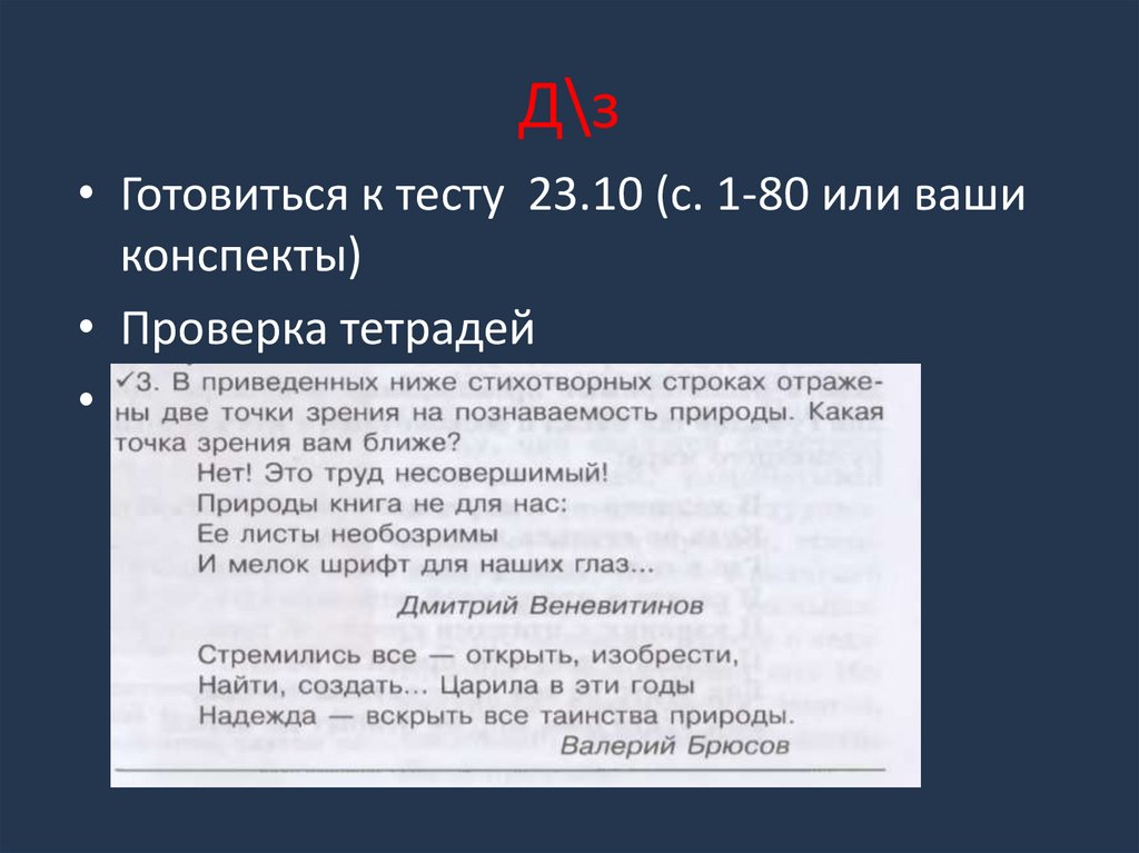 Д\з• Готовиться к тесту 23.10 (с. 1-80 или ваши