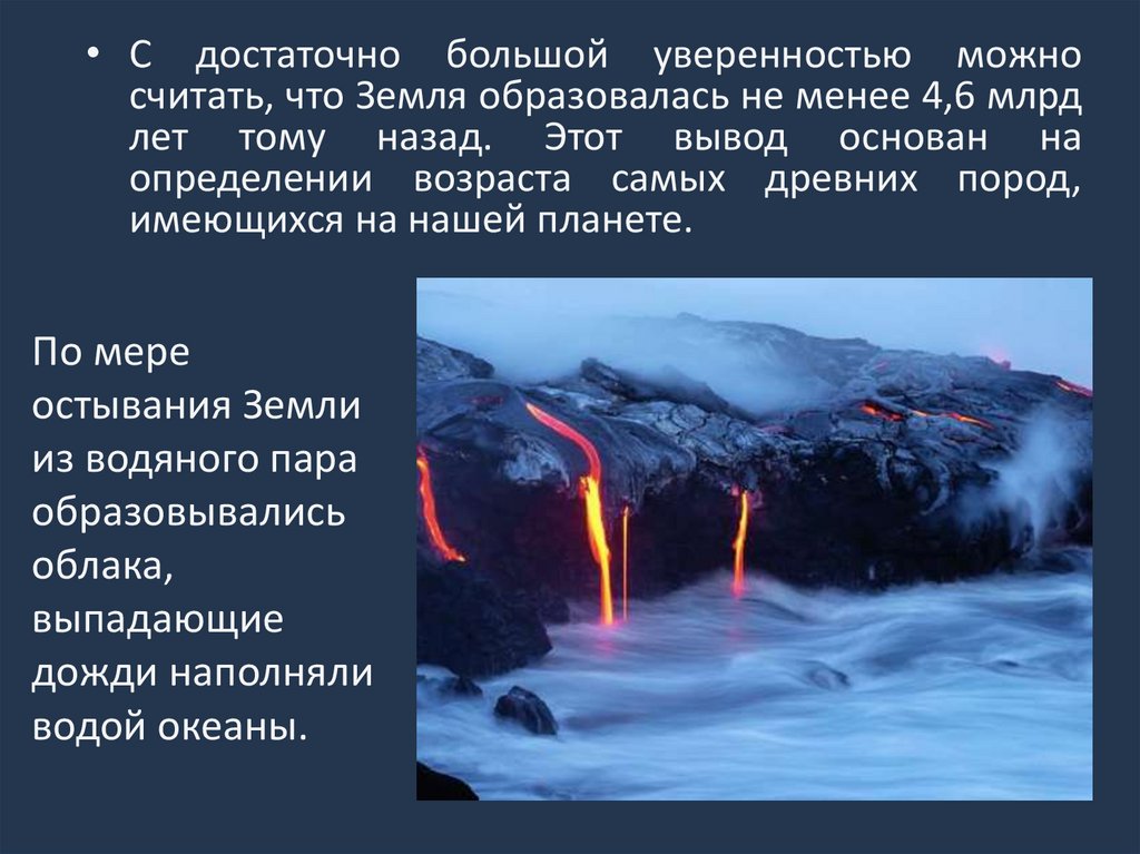 • С достаточно большой уверенностью можносчитать, что Земля образовалась не менее 4,6 млрд