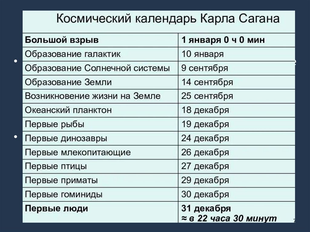 Космический календарь• Нам очень трудно представить себе такие огромные