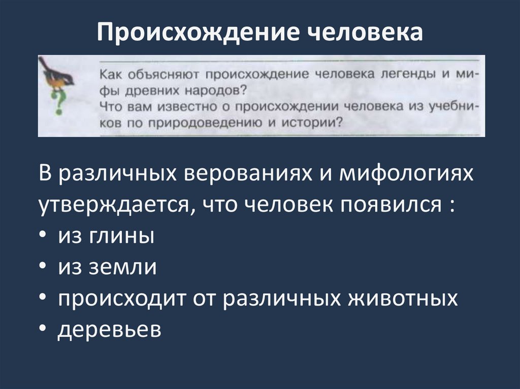 Происхождение человекаВ различных верованиях и мифологиях