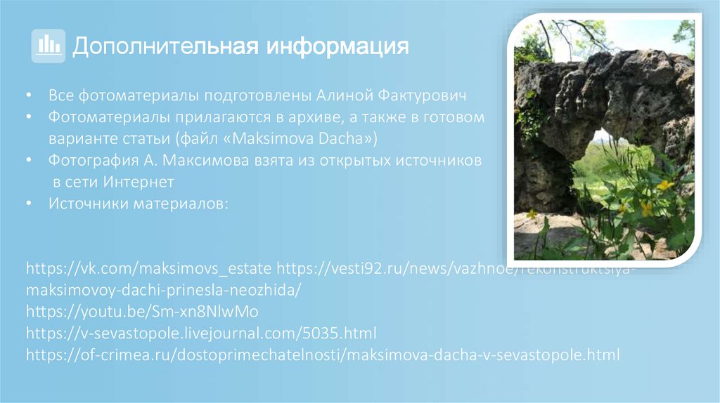 Дополните• Все фотоматериалы подготовлены Алиной Фактурович