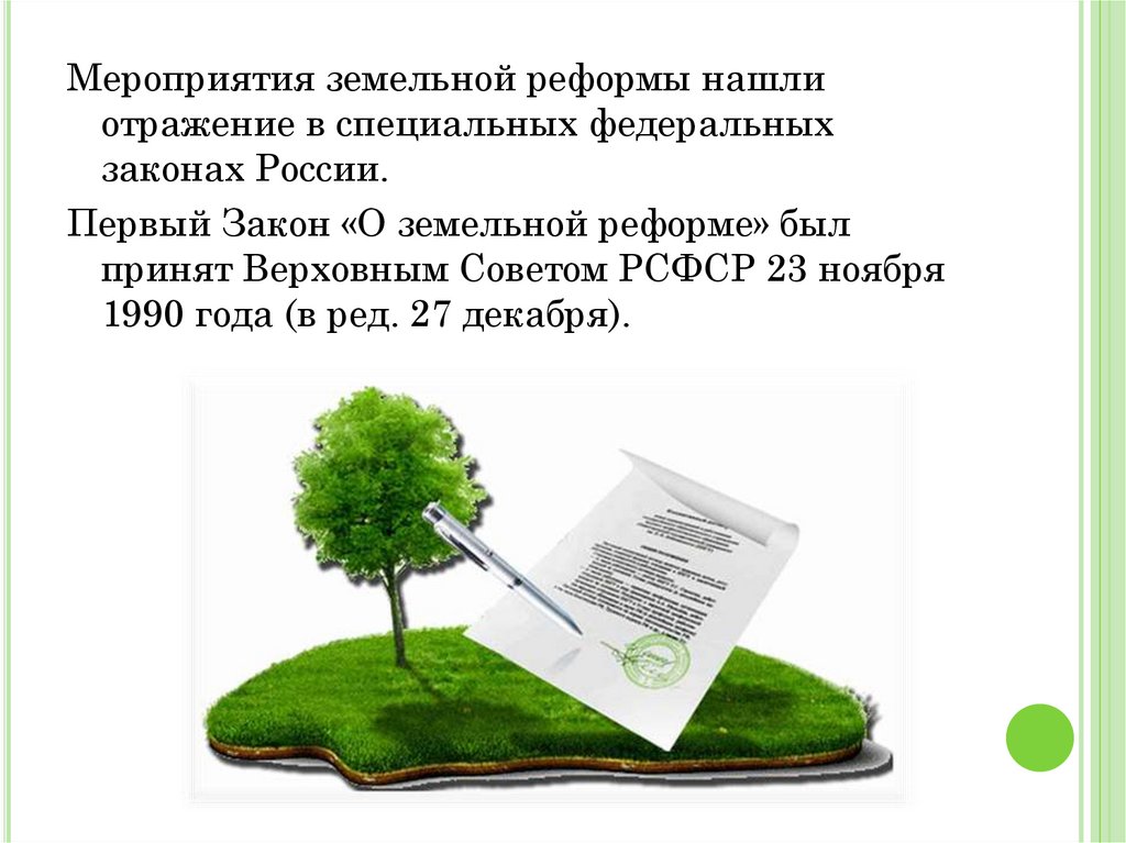 Мероприятия земельной реформы нашлиотражение в специальных федеральных