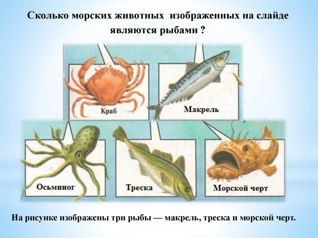 Сколько морских животных изображенных на слайдеявляются рыбами ?