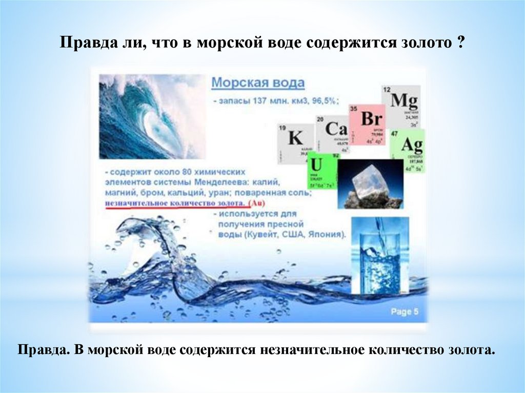 Правда ли, что в морской воде содержится золото ?Правда. В морской воде содержится незначительное количество золота.