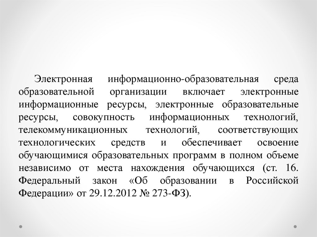 Электронная информационно-образовательная средаобразовательной организации включает электронные