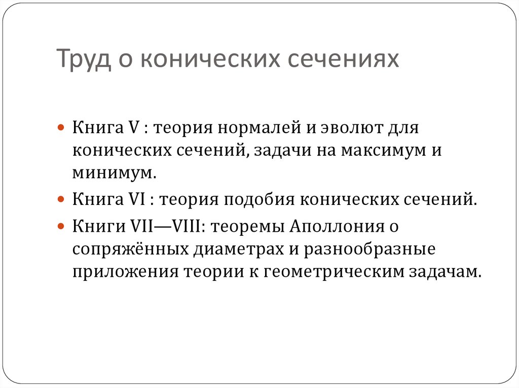 Труд о конических сеченияхКнига V : теория нормалей и эволют для