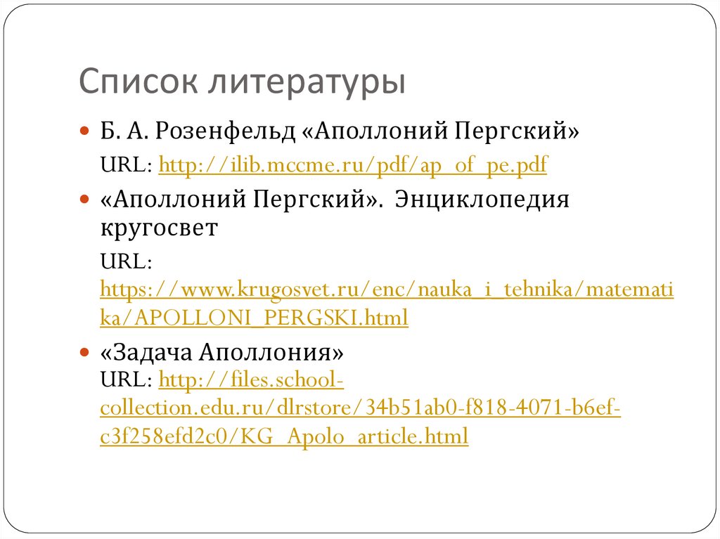 Список литературыБ. А. Розенфельд «Аполлоний Пергский»