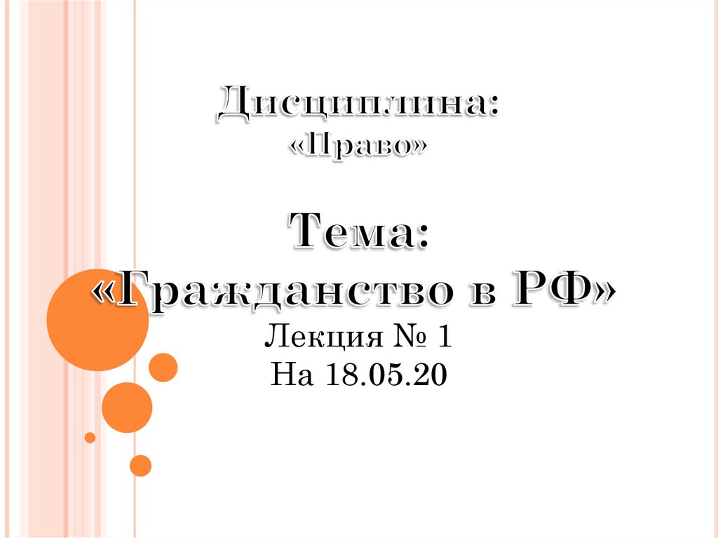 1. Гражданство РФ: понятие и законодательноерегулирование.