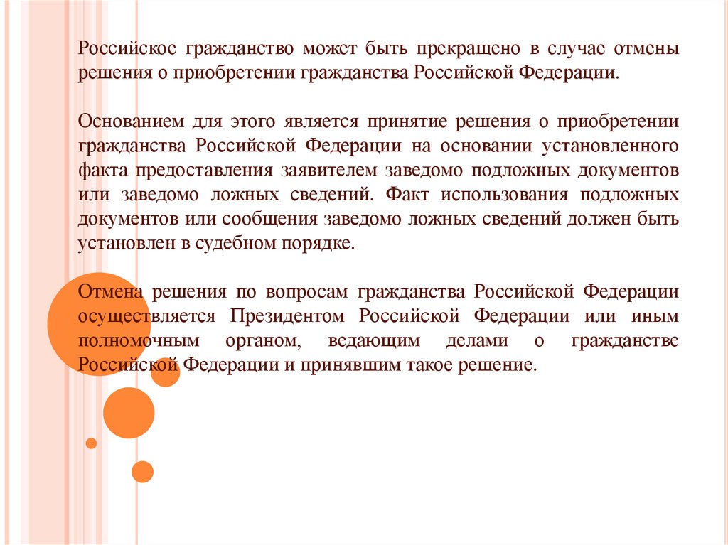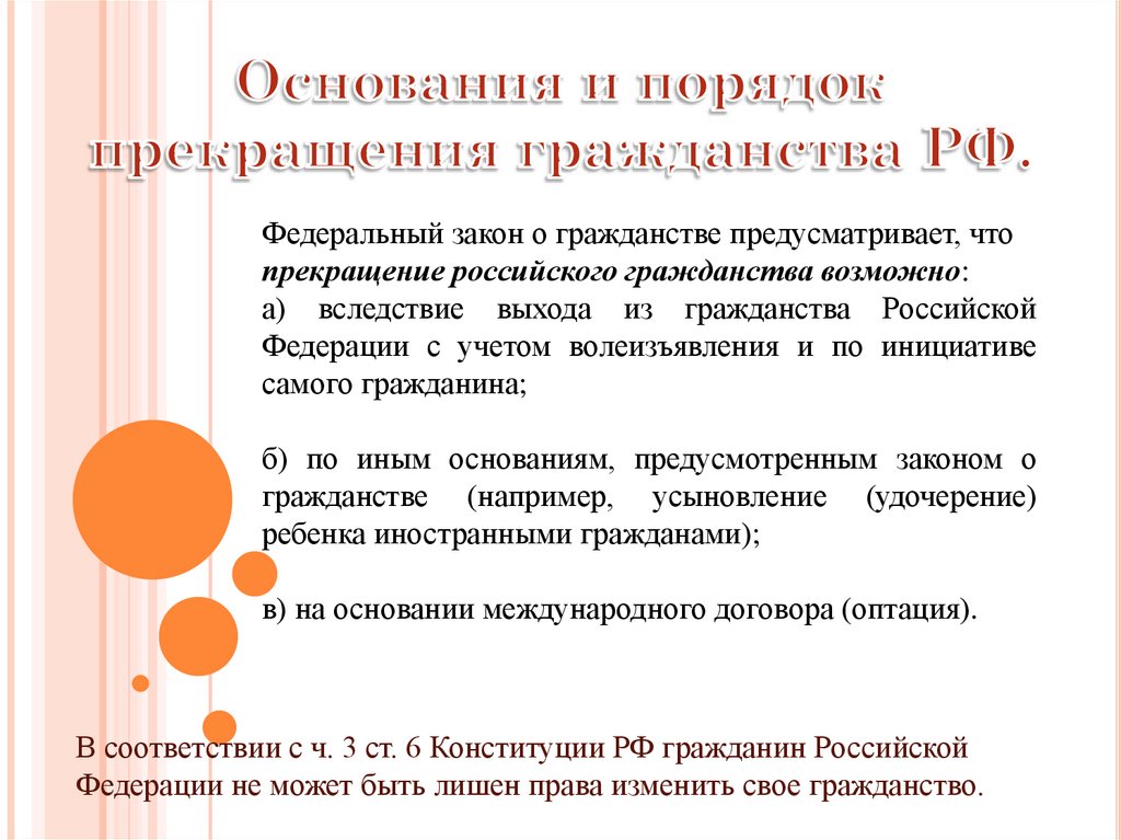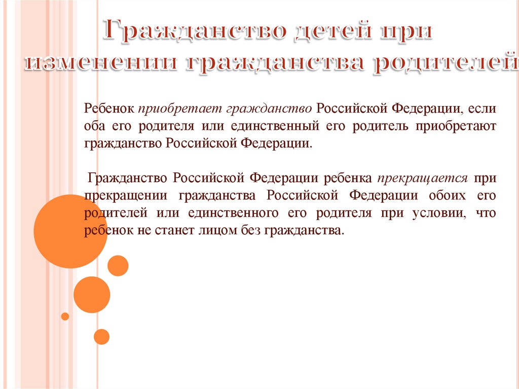 Федерации. Гражданство Российской Федерации ребенка может быть прекращено