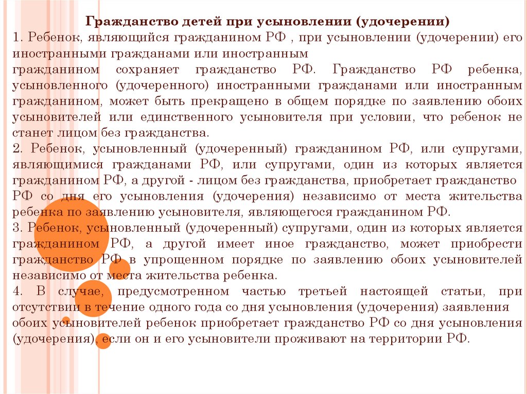 Гражданство детей при усыновлении (удочерении)1. Ребенок, являющийся гражданином РФ , при усыновлении (удочерении) его