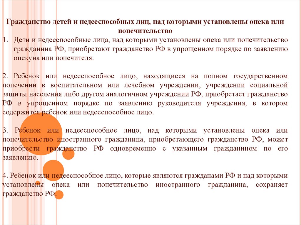 Гражданство детей и недееспособных лиц, над которыми установлены опека илипопечительство