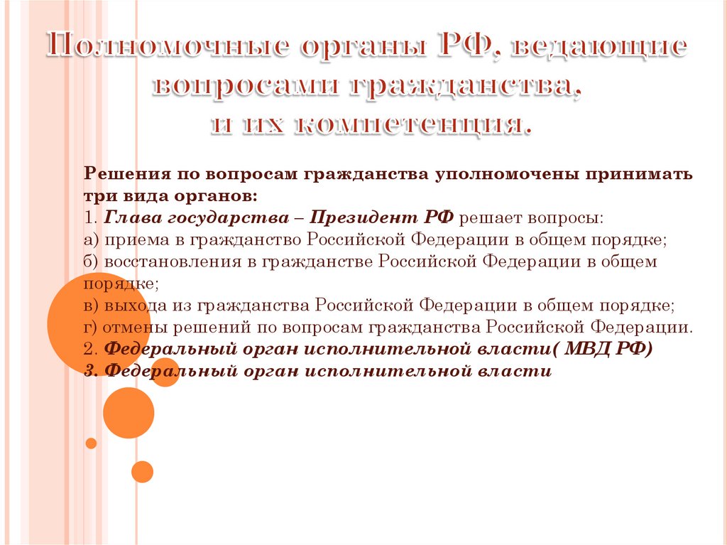 Решения по вопросам гражданства уполномочены приниматьтри вида органов:
